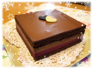 カシスとチョコレートのムースケーキ カシスの酸味とチョコレートムースが 良くあったケーキです。 |