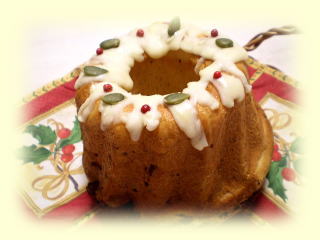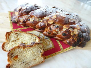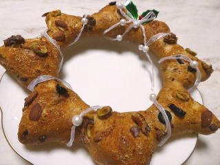 ヴァーノチュカ チェコ共和国のクリスマスのパンです。 9本の生地が編み上げられた大きな編みパンで、 ドライフルーツがたっぷり入っています。 ハチミツや卵、バター、生クリームなどを たっぷり入れたリッチタイプのパンです。 |