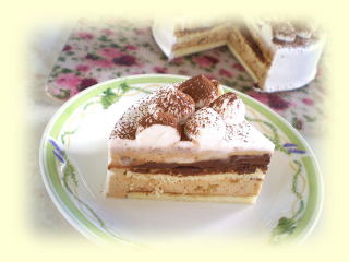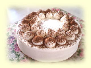 クレーム・シャンティとココアで 仕上げます。 おひとり、直径15cmくらいのケーキを、 1台作って、お持ち帰りいただけます。 |