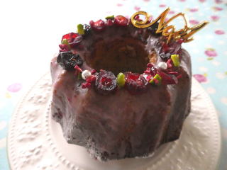 デリス・クグロフ オレンジピールやウォールナッツ、 いちじく、ガナッシュなどを入れた、 デリシャスなチョコレートケーキです! しっとり、濃厚で まわりのオレンジ風味のグラスが シャリっとして、また美味しい! 日持ちのするチョコレート菓子です。 飾りの可愛いシュガーリングも作ります。 |