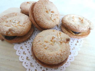 ダックワーズ メレンゲ生地で作るお菓子で、表面はサクッと、 中はしっとりしています。 モカクリームをサンドしていただきます。 食パンの発酵時間に作ります。 |