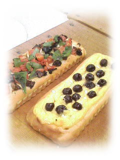 米粉のフォカッチャ2種 トマトとバジルのイタリアンタイプと カスタードとグリオットのスイーツタイプの 2種類のフォカッチャです。 米粉を使うので モチモチっとしたフォカッチャです。 |