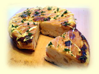 ポテトのパンキッシュ マッシュポテト、ベーコン、オリーブ、 ドライトマトなどのフィリングを パン生地の器に詰めて焼き上げた パンキッシュです。 |