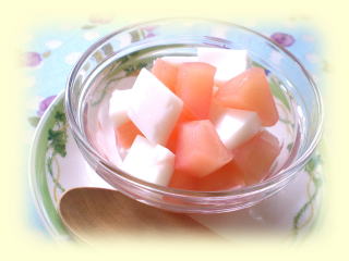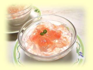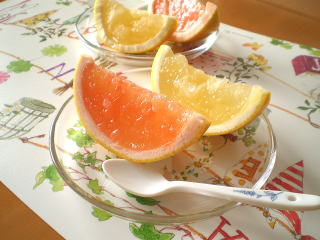 ~ グレープフルーツゼリー~ グレープフルーツをくりぬいて器にし、 絞った果汁と、果肉で作ったゼリーを流して 固めます。 まるで、グレープフルーツのような かわいいゼリーです。 ※ホワイトかルビーのどちらかになります。 |