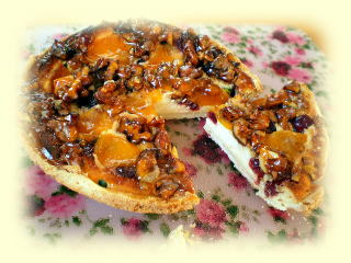 ~ はちみつチーズタルト ~ お砂糖の代わりに、たっぷりのはちみつを使った サクサクなタルトです! クリームチーズのフィリングに 甘酸っぱいアプリコットやクランベリー、 カリッとしたくるみをたくさん トッピングします。 約直径15cmのタルト1台お持ち帰りです。 |