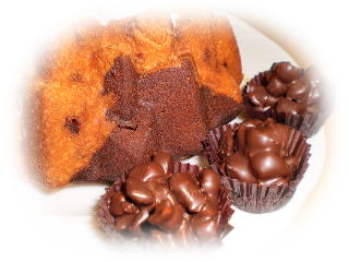 リースショコラ カフェ風味の生地とココアを合わせた しっとりしたマーブルケーキに 香ばしいくるみを合わせた ケーキです。 |
