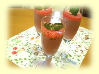 ~ トマトDEム-ス ~ 完熟トマトで作るムースの中に 枝豆のムースをマーブル状に 混ぜ込みます。 ピンクとグリーンがとってもかわいい 野菜スイーツです。 食べてびっくり! とても美味しいケーキです。 |