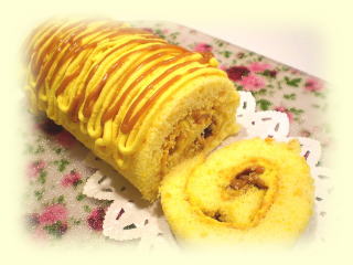 かぼちゃとキャラメルの 米粉ロールケーキ かぼちゃを入れた米粉100%のスポンジで ふわふわロールケーキを作ります。 かぼちゃクリームと、香ばしいクルミと キャラメルクリームを巻き込みます。 約14㎝位の長さのケーキを作ります。 |