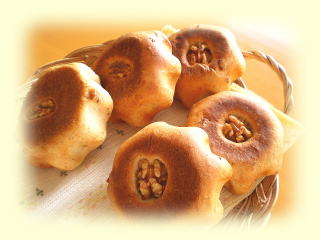 ~ カマンベールナッツパン ~ たっぷりのミルクを使ったパン生地に、 たっぷりのウォールナッツと カマンベールチーズを入れました。 トロ~っととろけたカマンベールチーズと 香ばしいウォールナッツが とても美味しいパンです。 |