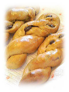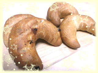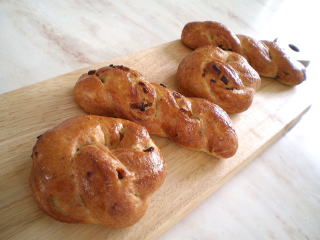 ~ カレンズ・ブロート ~ コーヒーメロンパンと同じ生地 で作ります。 カレンズがいっぱい入った、 ツイストパンです。 |
