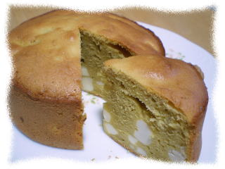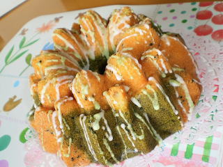 ~ 抹茶のマーブルケーキ ~ 抹茶のきれいな緑が春らしい マーブルケーキです。 黒ごまのぷちぷち感が いいアクセントになっています。 王冠型の素敵なケーキに 2色のアイシングで飾ります。 |