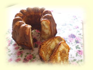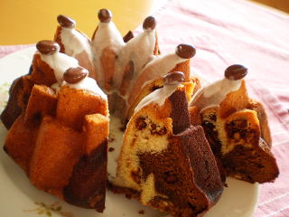 コーヒークラウンケーキ へーゼルナッツのキャラメリゼを入れた コーヒーマーブルケーキです。 |