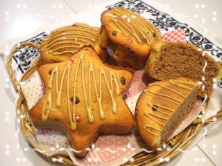 | ~ へーゼルナッツと チョコレートのケーキ~ へーゼルナッツとチョコレートがたくさん入った 日持ちのするケーキです。 かわいいベル、靴下、星型で焼き、 アイシングでデコレーションします。 へーゼルナッツの香ばしさが際立つ 美味しいケーキです。 おひとつ、お土産です。 |