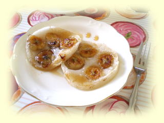| ~ キャラメルバナナプリン ~ ほろ苦くて香ばしいキャラメルソースと バナナのプリンです。 生クリームやチョコ、ベリーをトッピングします。 |