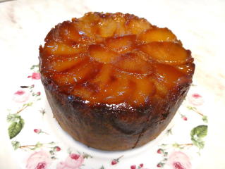 キャラメルアップルケーキ キャラメリゼしたりんごをたっぷり入れた しっとりしたケーキです。 上面にもキャラメルりんごをたっぷり飾った、 直径約12cmのケーキを1台作り、 そのままお持ち帰りいただけます。 |