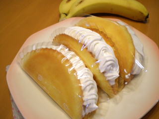 ~ バナナオムレット~ ふわふわスポンジに バナナと、たっぷりの生クリームを サンドしました。 ちょっとなつかしい オムレツケーキです。 |