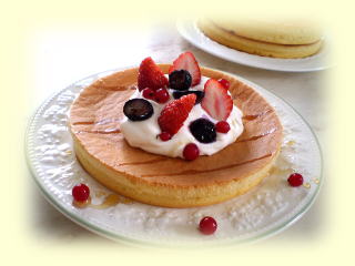 ココナッツミルクと米粉のミニパンケーキ ココナッツミルクと米粉で作る、 モチモチのパンケーキです。 バナナとメープルシロップをトッピングして 試食します。 |