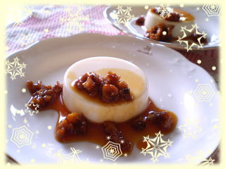 ~ キャラメルソースのパンナコッタ ~ プルンッと、なめらかなパンナコッタに、 ほろ苦いキャラメルソースと、 香ばしいナッツがとてもよく合います! |