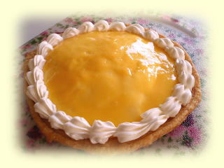 ~ レモンクリームパイ ~ サクサクのパイ生地に レモンムースを入れて作る。 冷たいパイです。 直径15cmのパイが そのままお持ち帰りいただけます。 |