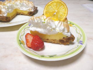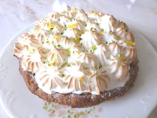 レモンタルト 国産レモンで作った甘酸っぱいレモンクリームを サクサクに焼いたパイの器にたっぷり詰めて、 メレンゲで飾りました。 |