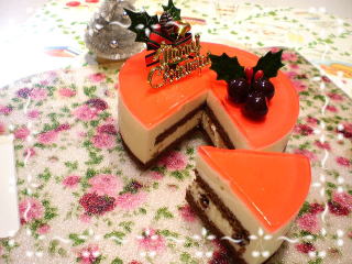 ~ サワークリームとグリオットの クリスマスケーキ ~ 真っ白なサワークリームのムースの間に ココアのスポンジとグリオット(さくらんぼ)をサンド。 表面はグレナデンの赤いゼリーです。 さっぱりしたサワークリームと、グリオットが とても良く合った、色合いも綺麗なケーキです。 グリオットは、シロップ漬けとブランデー漬けの 2種類を用意しました。 お好みでお選びいただけます。 12cmのケーキ1台、お土産です。 |