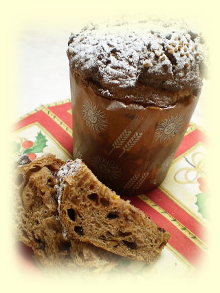 天然酵母のショコラパネトーネ イタリアの伝統的な菓子パンで、 甘く、日持ちのする、 クリスマスのお菓子(パン)です。 ドライフルーツの代わりに、 ココア、チョコレート、くるみなどを入れて、 今回は、とかちの酵母で焼き上げます |