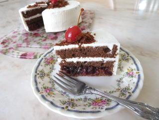 シュバルツバルダー・ キルシュトルテ ココアのスポンジに、チョコレートクリームと 生クリーム、さくらんぼをはさんで キルシュを効かせた デコレーションケーキです。 |