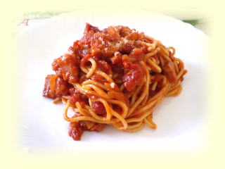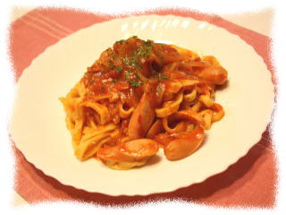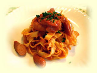 トマトソースの手打ちパスタ 手打ちでタリアテッレを作り シンプルなトマトソースでいただきます。 |