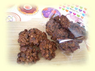 アーモンドチョコクッキー 香ばしいアーモンドとチップチョコがたっぷりの サクッとしたアメリカンクッキーです。 溶かしたチョコレートも入れていますが、 甘さ控えめのクッキーです。 クッキー袋に入れてお持ち帰りいただけます。 |
