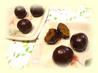 | ~ パンプキン・チョコボール ~ かぼちゃとラムレーズンを チョコレートでくるんだ 可愛くて美味しい、チョコボールです♪ |