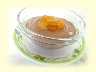チョコレートムース 柚子ジャム添え クーベルチュールチョコレートで作る、 口当たりの良いムースに、 手作りの柚子ジャムを添えて いただきます。 |